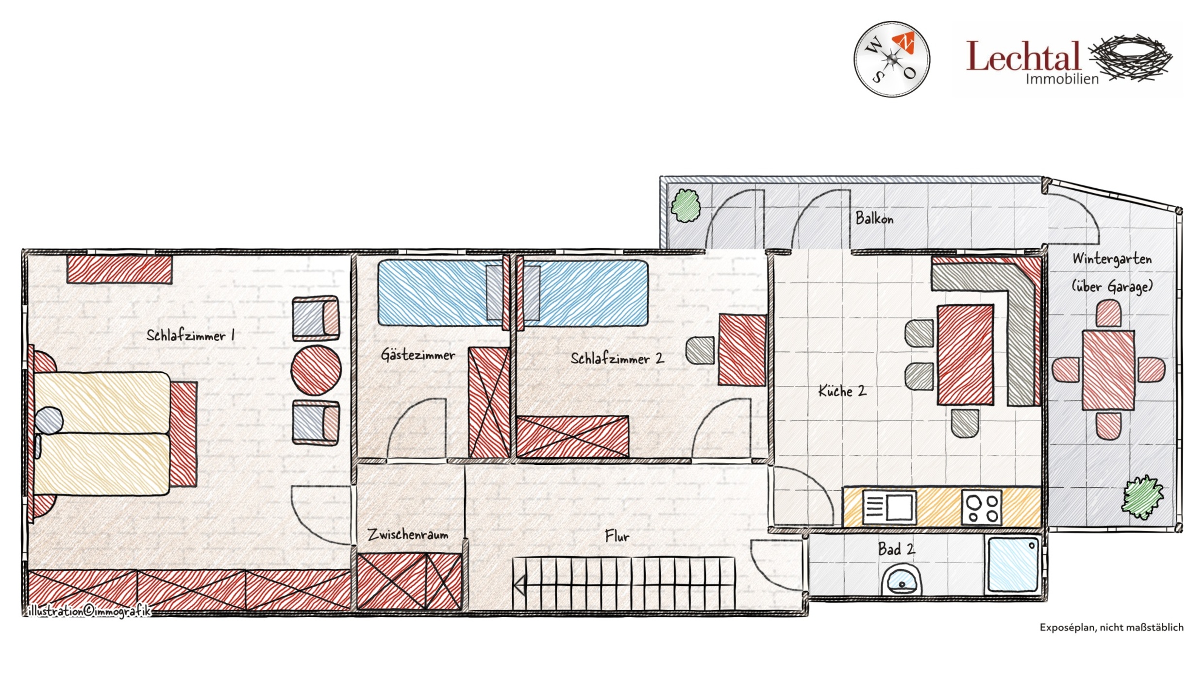 Die dargestellte Einrichtung in dem Grundrissplan dient nur als Beispiel.